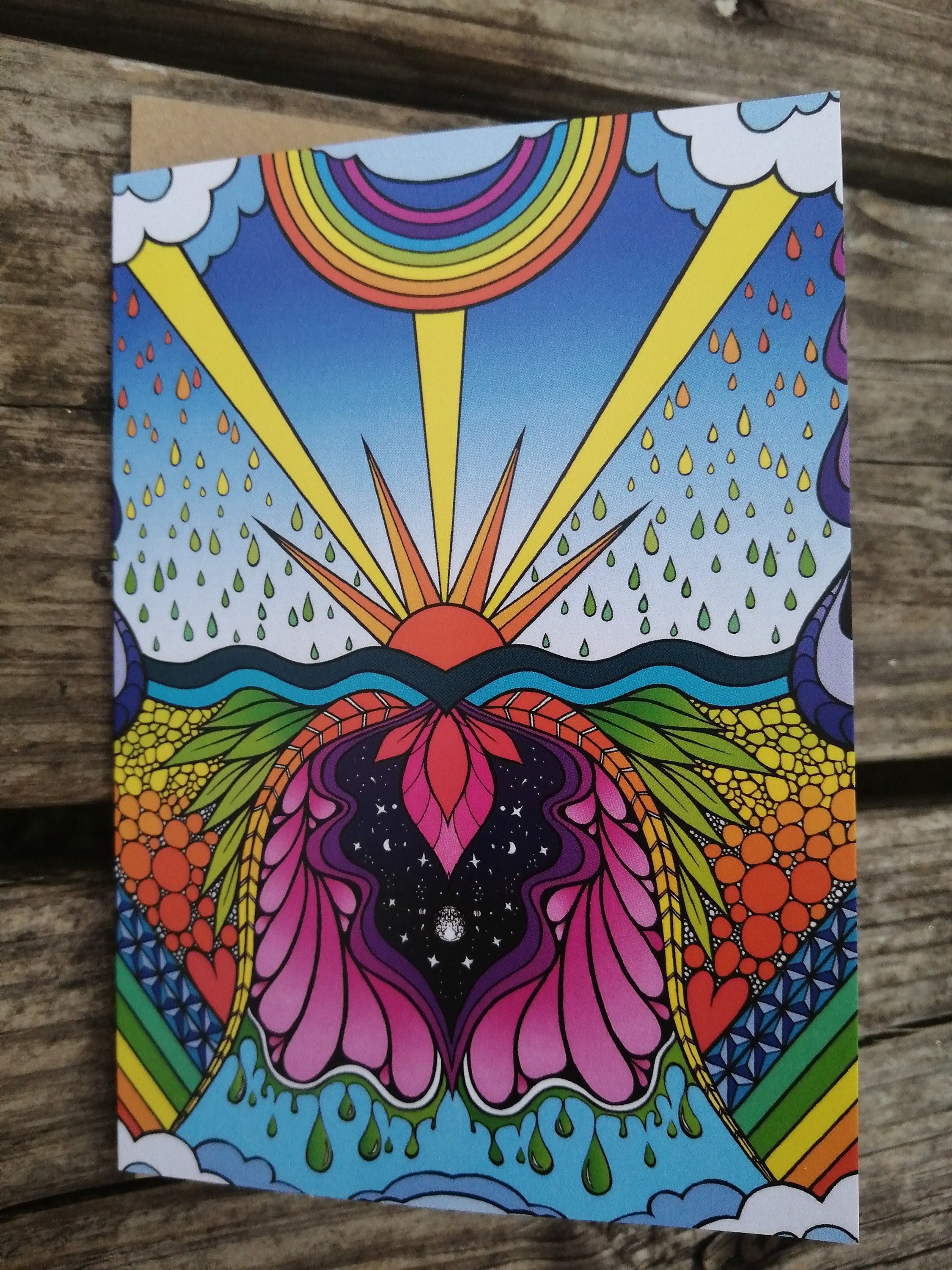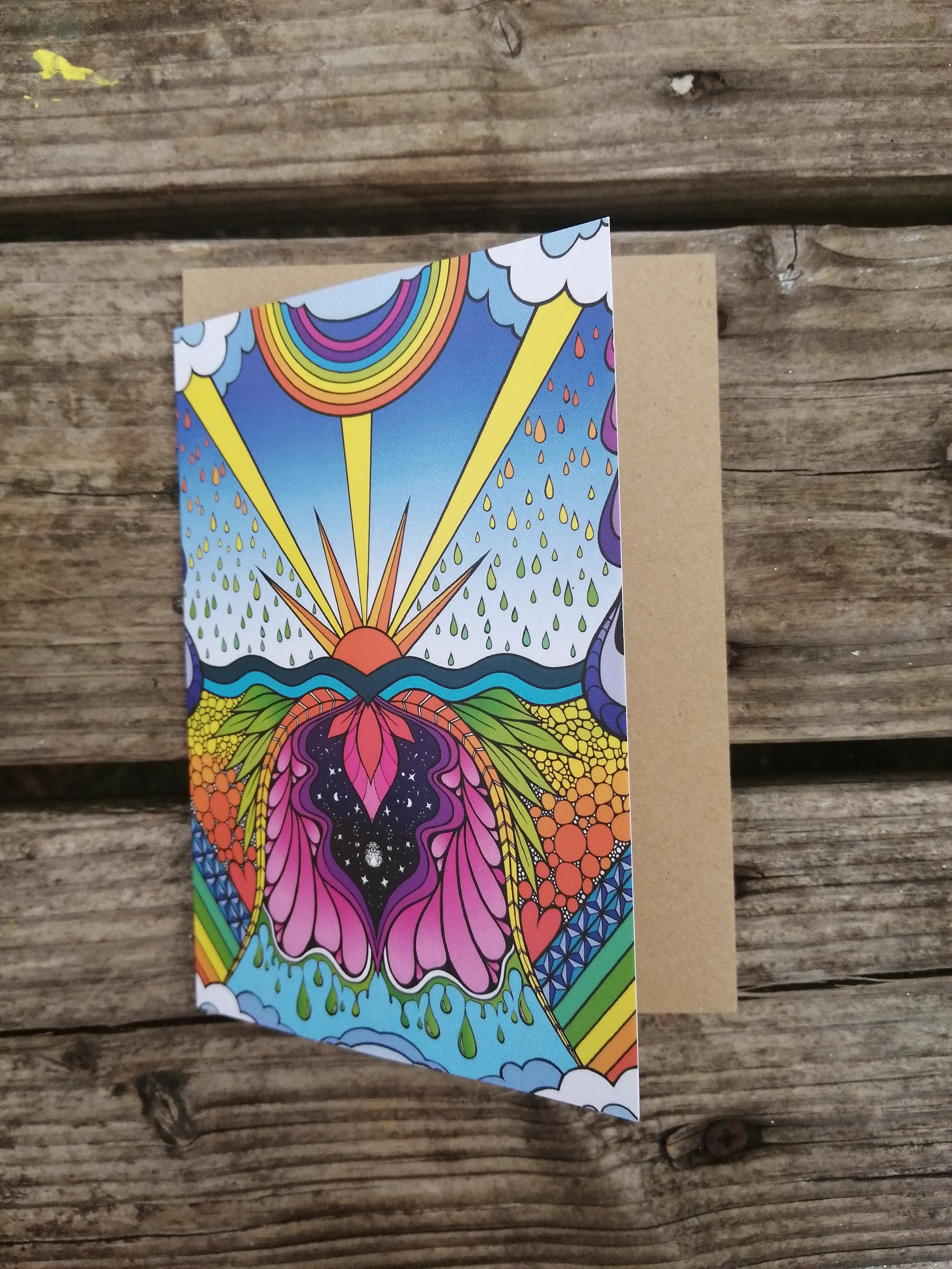 A6 greeting card with my new rainbow Shine print on.