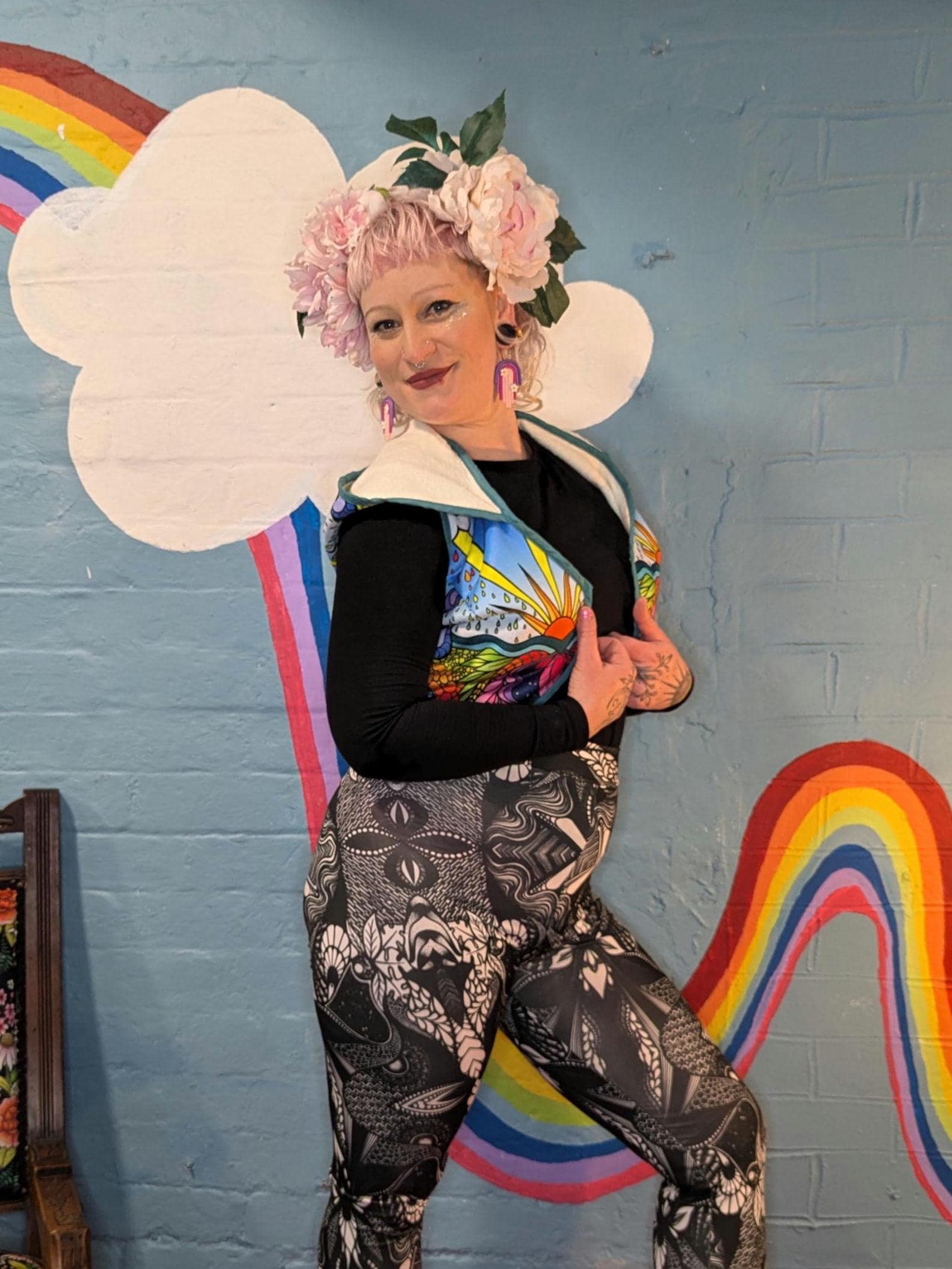 Amazing velvet and wool rainbow waistcoat printed with my new Shine print.