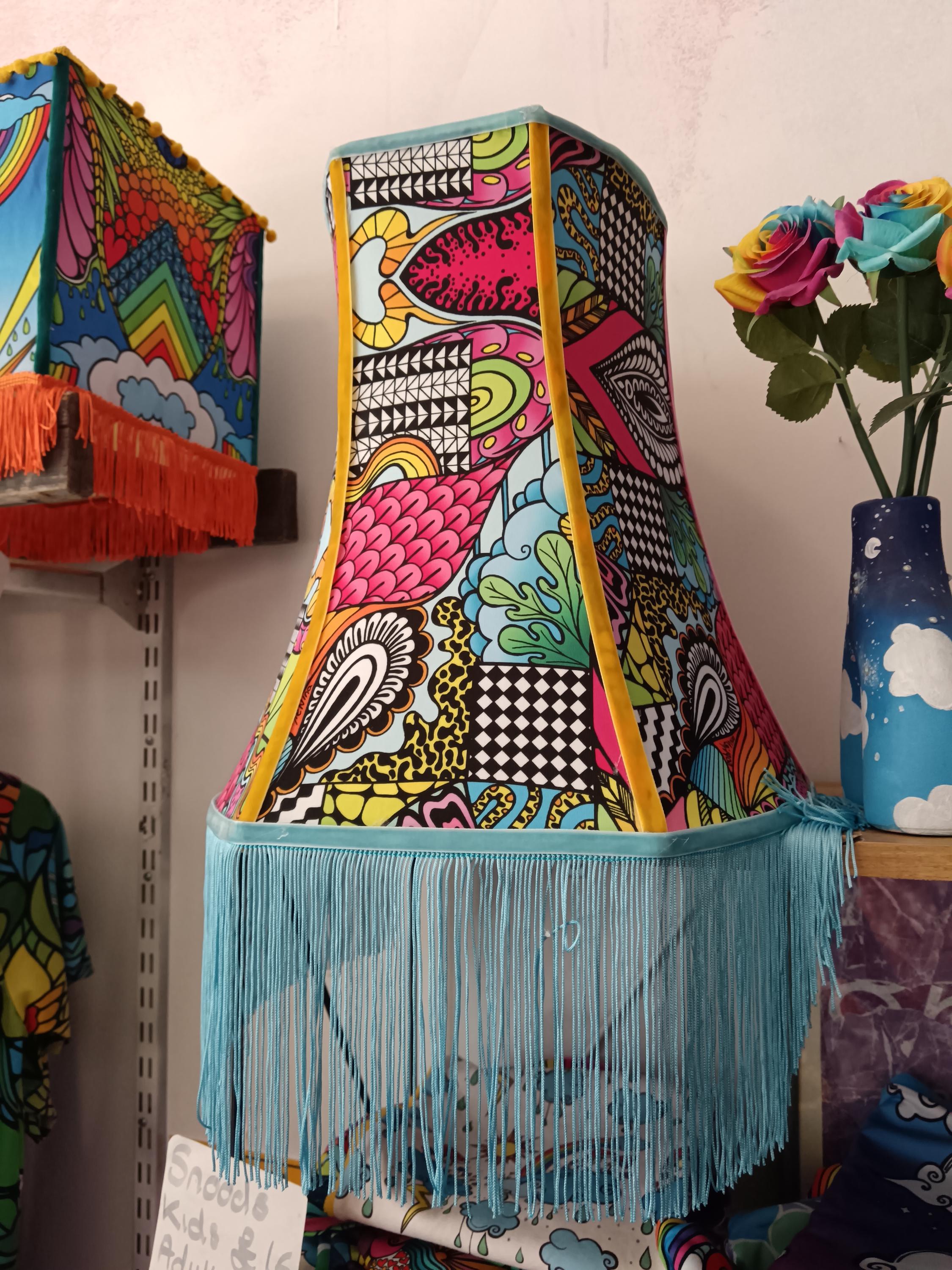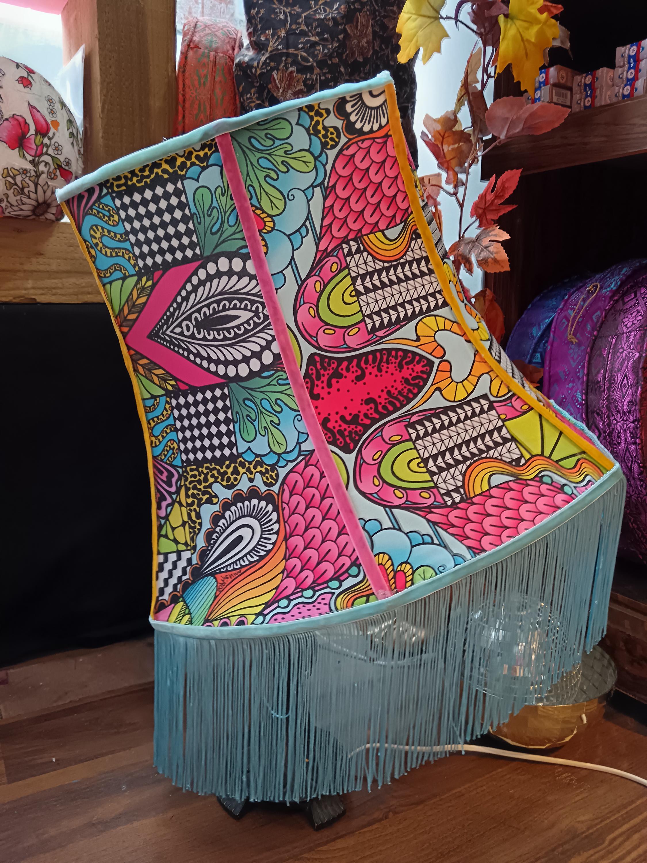 Beautiful large lampshade decorated with my pastel meli print with matching tassles.